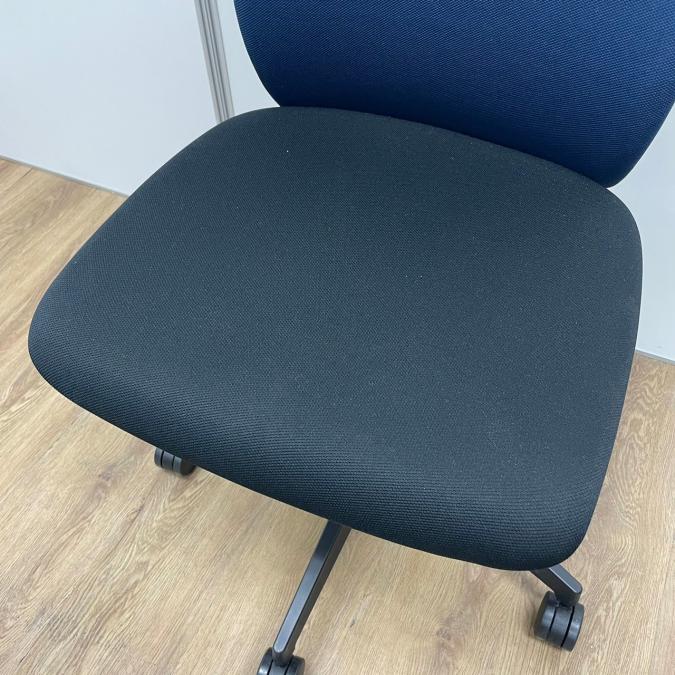 イトーキ製 人気高いフルゴシリーズ ブラック×ネイビーブルー 肘無しローバックチェア!!- 京都東寺店