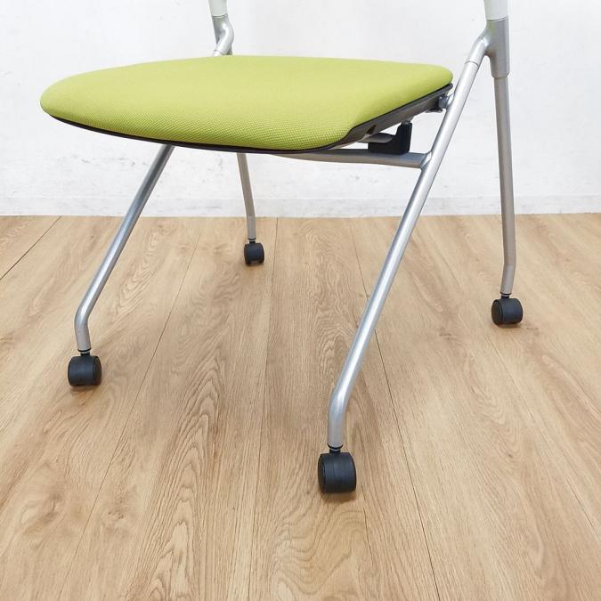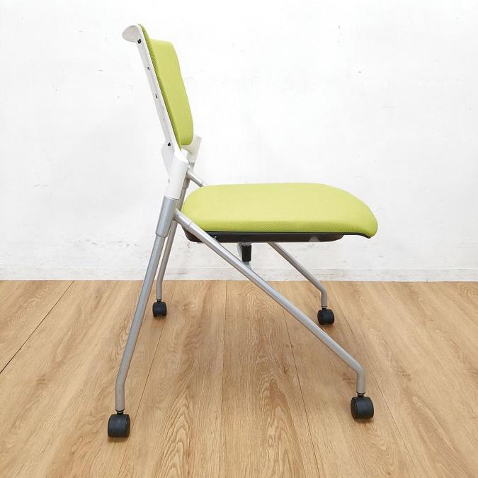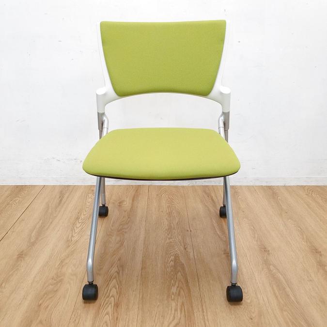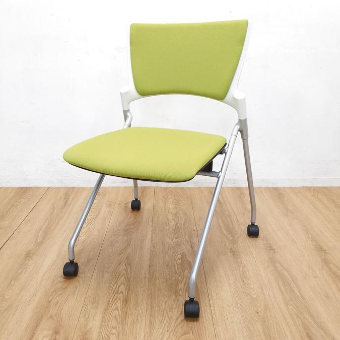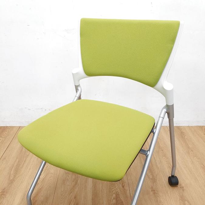 【在庫入替セール】【4脚限定】【平行ネスティングで省スペース化!】■イトーキ(ITOKI)製 マノスチェア(MANOSS)肘無 ネスティングチェア ミーティングチェア ■背パッド キャスター付 ■アイビーグリーン×ブラックシェル