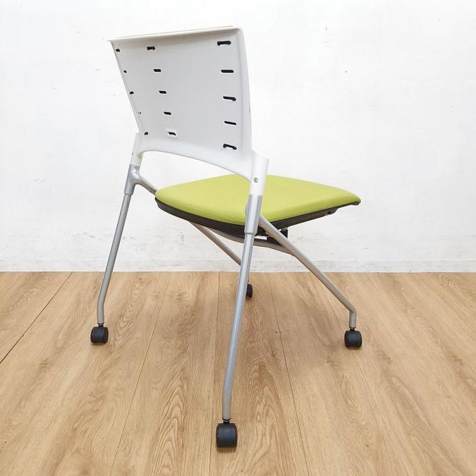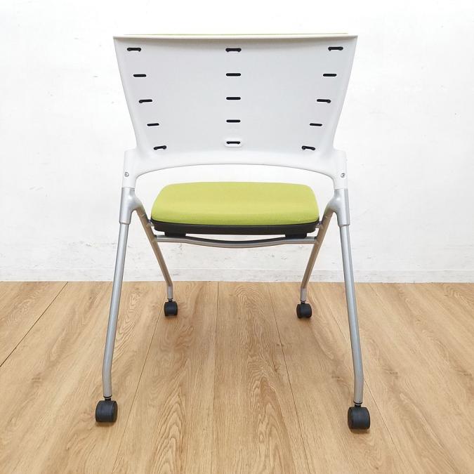 【重ねて収納!使い勝手抜群のネスティングチェア!】■イトーキ (ITOKI) マノス (MANOSS) チェア ネスティングチェア ミーティングチェア 肘付き 背パッドなし ■背:ホワイト/座グリーン ■キャスター付 ■固定肘 ■背面樹脂メッシュ