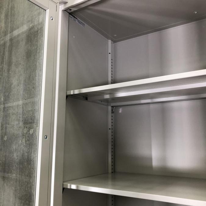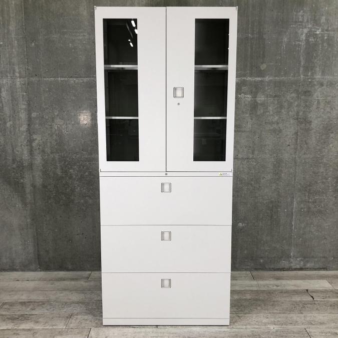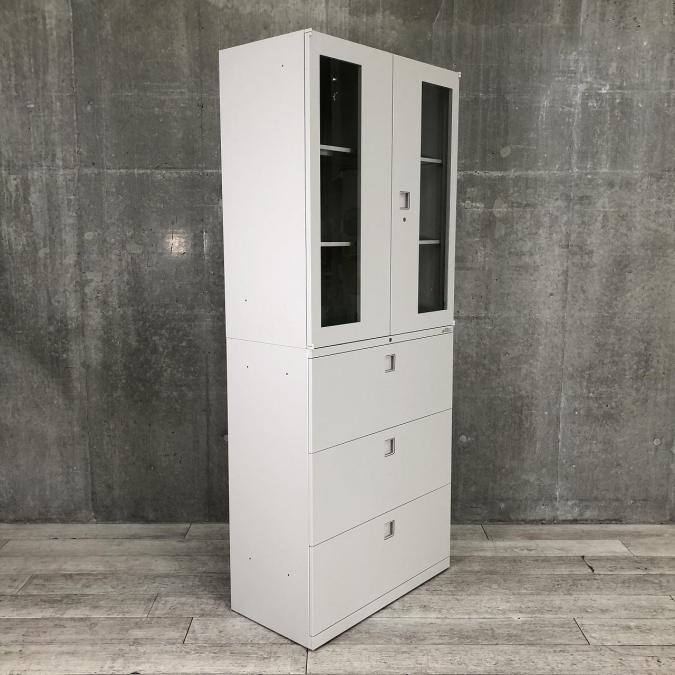 【希少品入荷!】【使い勝手抜群!ガラス戸両開きと引き出しの書庫セットが入荷!】■okamura(オカムラ) レクトラインシリーズ ガラス扉両開き+3段ラテラル書庫セット ■グレー 【弊社使用欄:A00920398】- 岐阜店