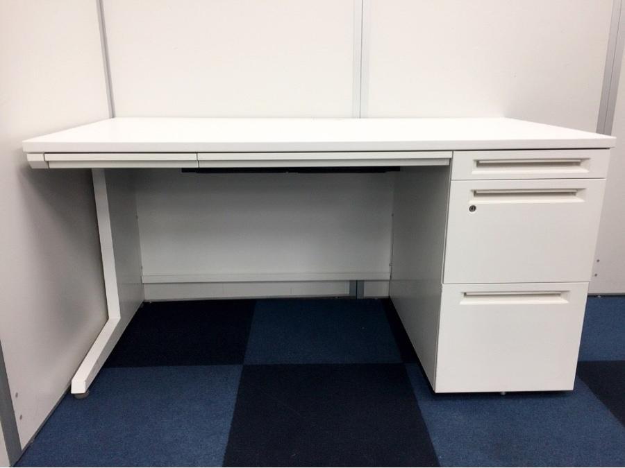 【8台入荷】【幅1400mm】全台鍵付き!真っ白オールホワイト片袖机⇨アドバンスシリーズ◆オカムラ製- 埼玉本店