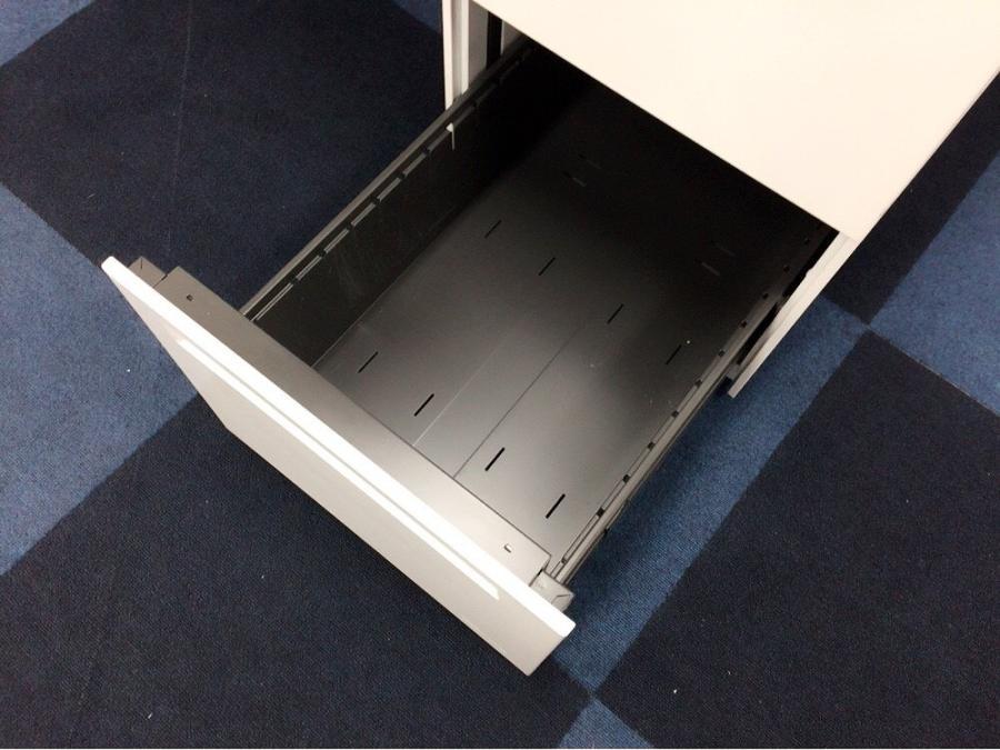 3段の引き出しは、もちろん鍵付きで、一括施錠が可能。上段には小物を、中段、下段は大きめのサイズになっていますので、A4ファイルが2段収納可能です!