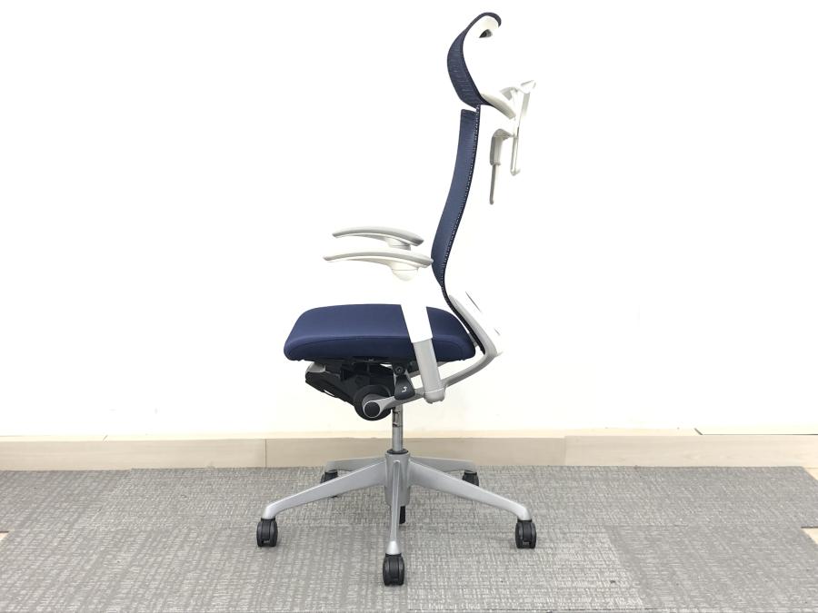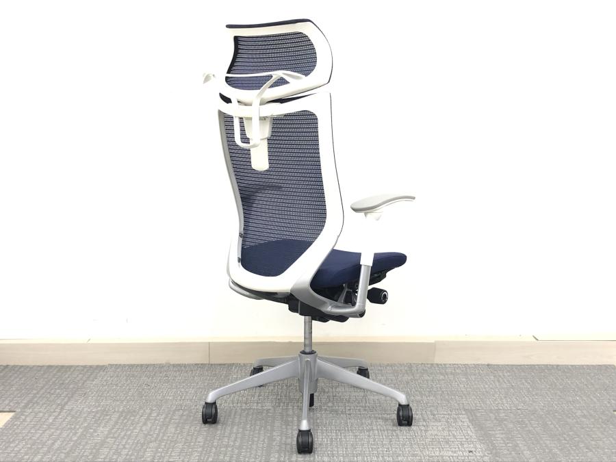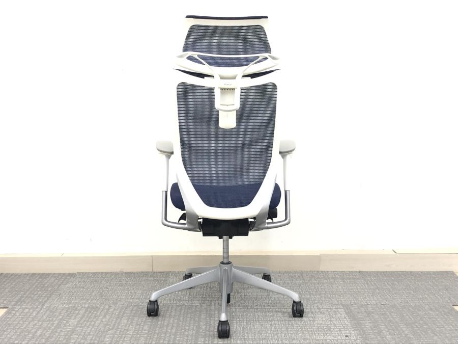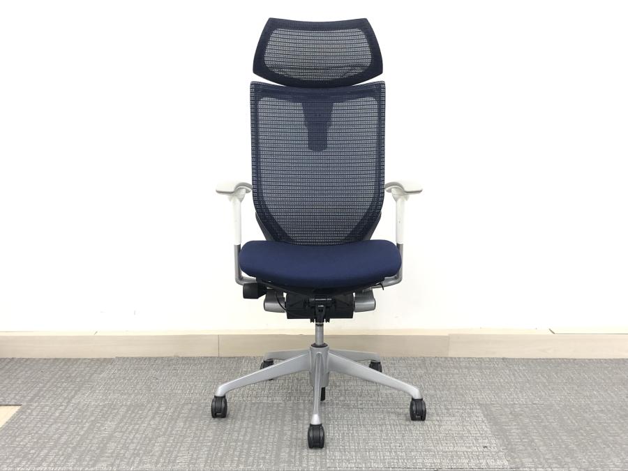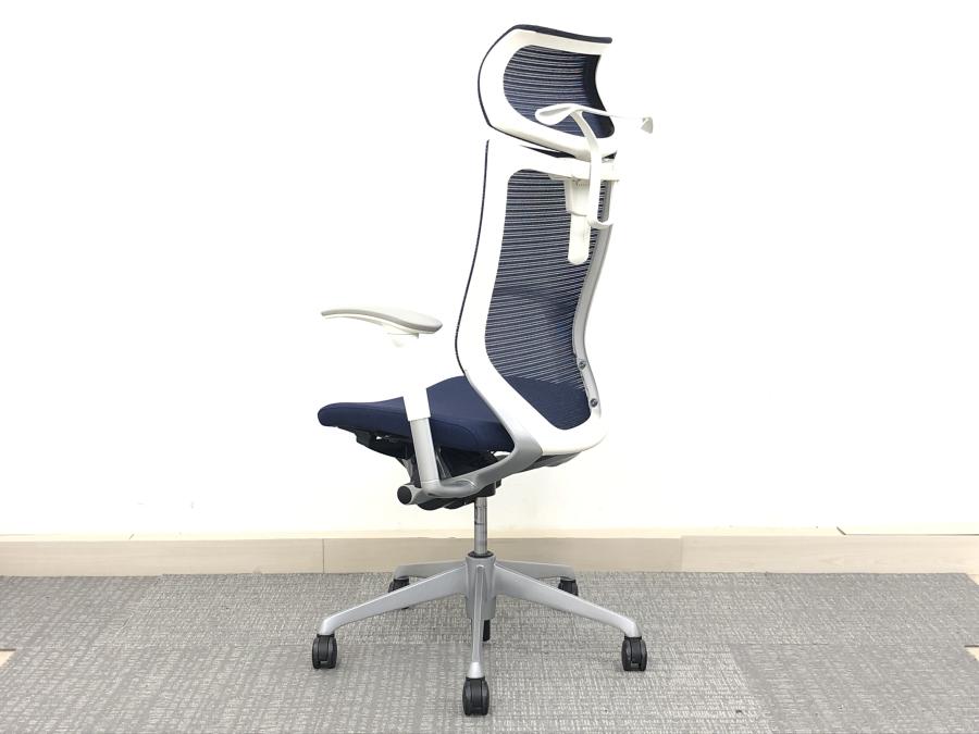 【限定1脚!!】大人気。ヘッドレスト付きのバロンチェアが入荷!早い者勝ちです! ■オカムラ/バロン/ダークブルー×ホワイトフレーム エクストラハイバック- 立川・八王子店