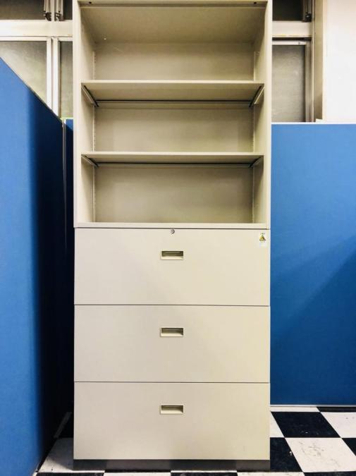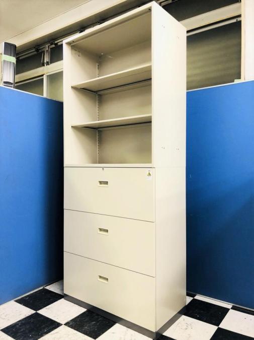 【壁面にスッキリ収納!】■コクヨ製 上下書庫セット(オープン+3段ラテラル)■【スチールキャビネット】- 川崎店