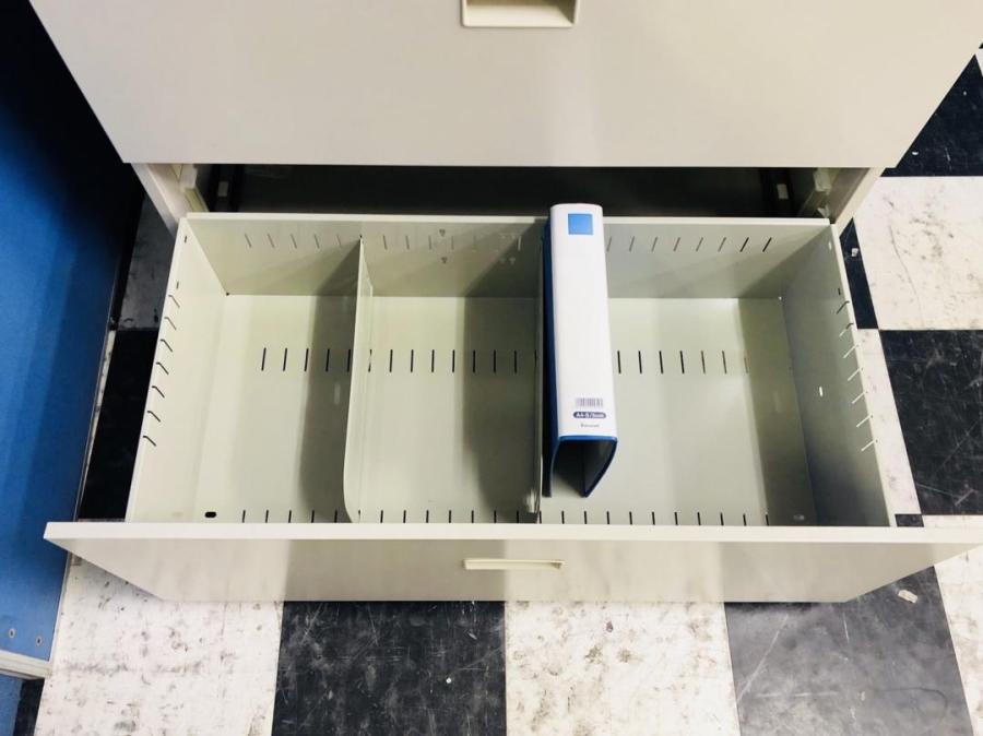 - 一部不具合ありそ引出の開閉不可、施錠不可、棚板無しといったの書庫の本来の効用を果たすための機能以外の一部が使用不可(例、扉、引出の開閉がしづらいなどがある。 )