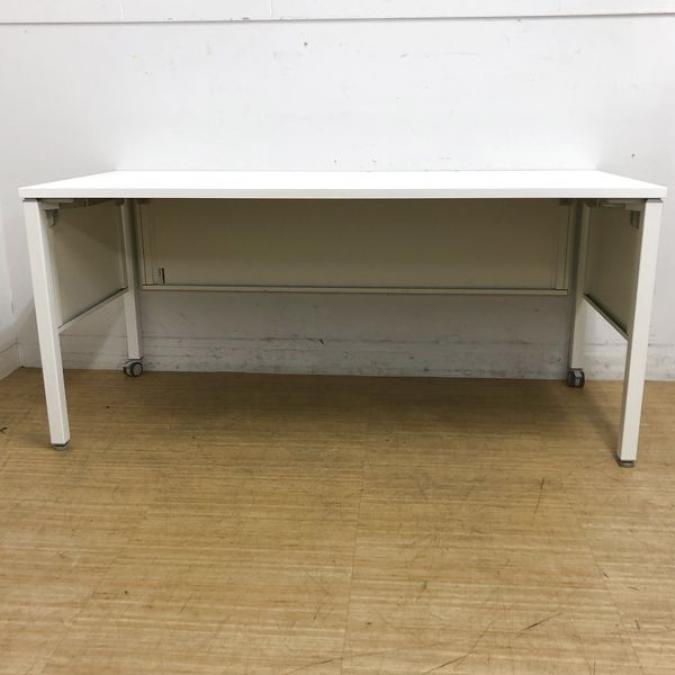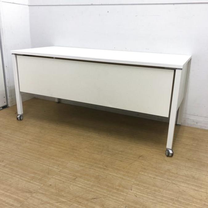 【在庫入替セール】片面デスク オカムラ アプションフリー 片側キャスター付き 幕板付き 人気のホワイト色- 名古屋千種店