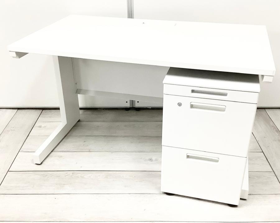 【引き出しつきデスクとワゴンの特別セット!】■内田洋行 スカエナシリーズ デスク+ワゴンセット ■横幅1200㎜×奥行き700 ■引き出しなし ■ホワイト 【中古でお得に買うなら品質の良いデスクを!】 ※ワゴンは在庫状況によって変動致します。