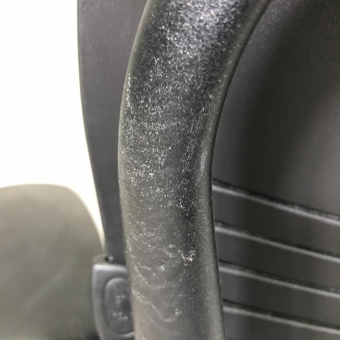 - あり黄ばみ・変色が広い範囲にうっすらある、または濃い黄ばみ・変色が一部ある。(例、座面・背もたれ、脚部等にある。)
