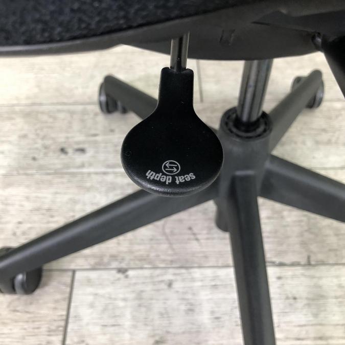 - 前後75㎜で調節可能。様々な体格にフィットします。座前縁部チルト機構も搭載で、前傾姿勢時の大腿部への負担も軽減します。