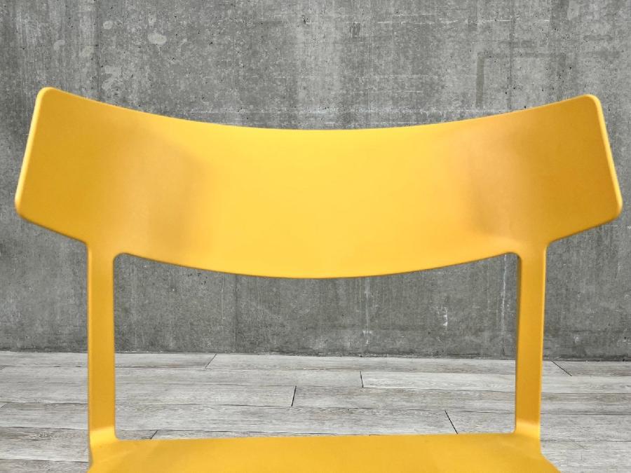 - かなり強い濃い黄ばみ・変色が商品全体にある。(例、座面・背もたれ、脚部等にある。)