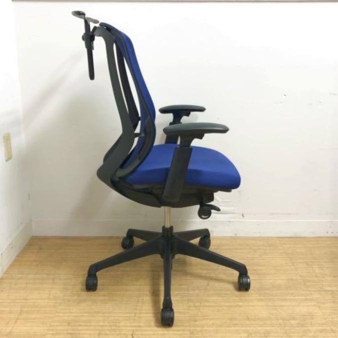 【新品ヘッドレスト交換済み】オカムラ/シルフィー/ブルー/可動肘