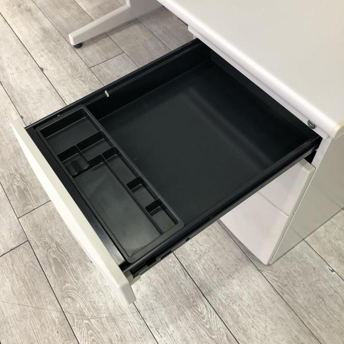 - 基本的なPCデスクの機能を有するコスパの良いシリーズ。収納力や引出しのロック機能などの安全機能も備えています。