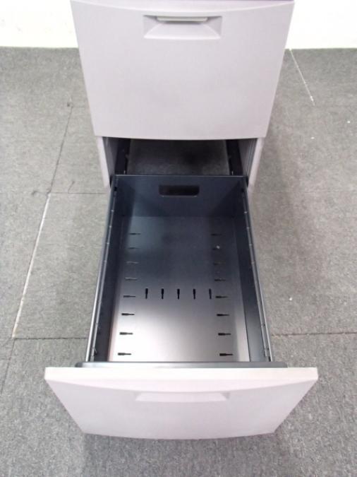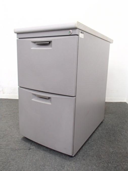 イトーキ CZシリーズ 2段脇机 鍵付き シリンダー錠 グレー デスク横に置いて作業スペースの拡張を ※樹脂部分に日焼け若干あり