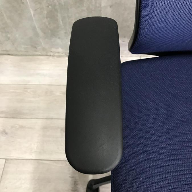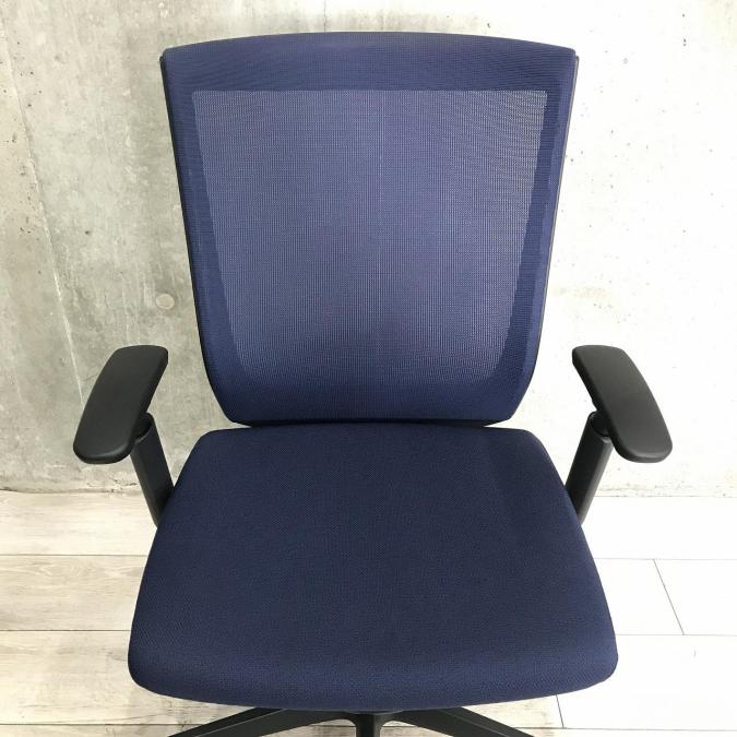 【長時間のデスクワークもランバーが快適にサポート!】【背中全体をサポートするハイバックタイプのメッシュチェア!】 ■okamura(オカムラ)製 エスクードチェア ハイバック ■可動肘付き ■色:ダークブルー×ブラック【弊社使用欄:A00920317】サーキュラーバリューCO2削減量の算出について