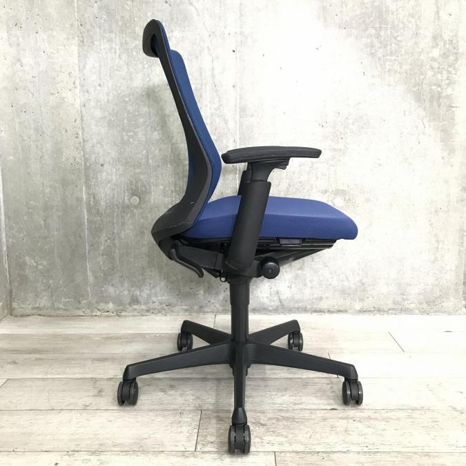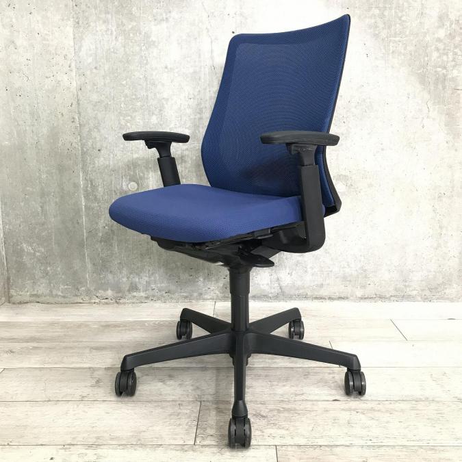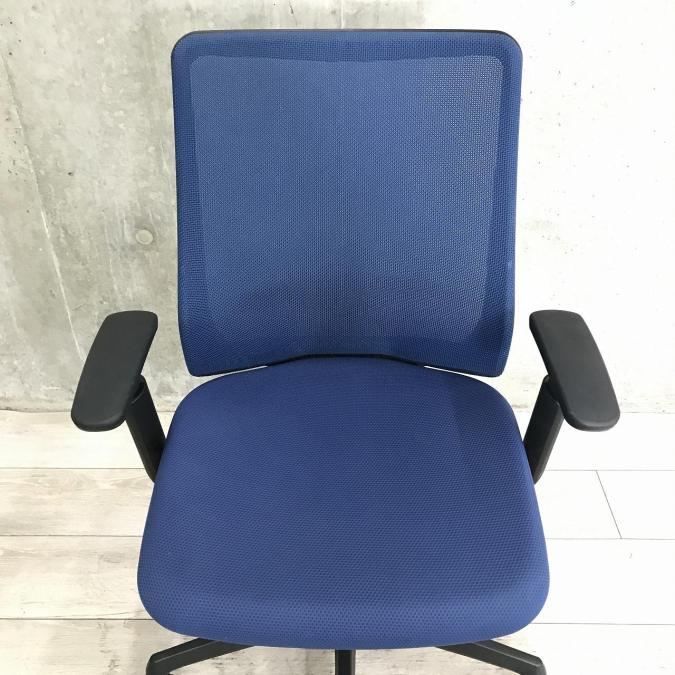 【長時間作業も快適フィット!腰まわりのホールド感が心地よい!】■オカムラ フルーエントチェア 肘付 ブルー ※背面擦れあり ■あのシルフィの座り心地を低コストで再現!【Okamura Fluent】★