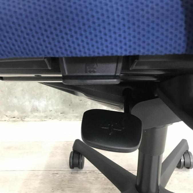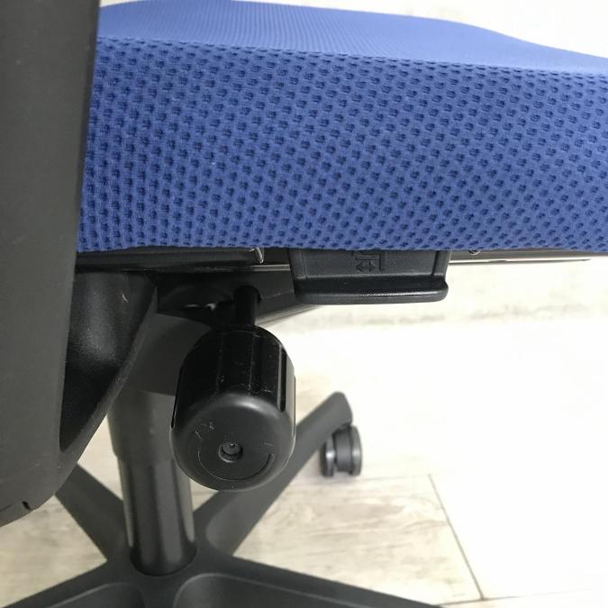 オカムラの最新定番オフィスシーティング フルーエント メッシュローバック アジャストアーム搭載モデル ミディアムブルー- 名古屋千種店