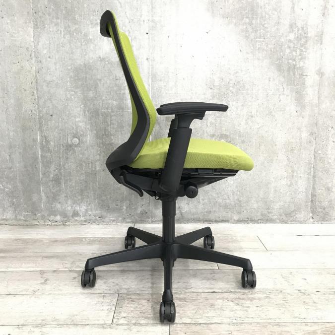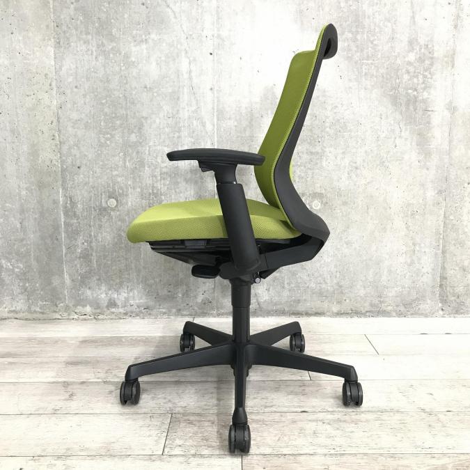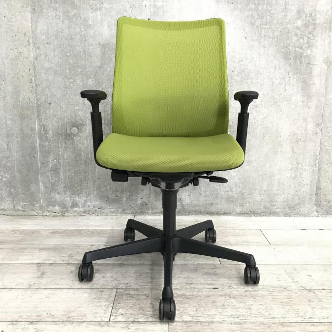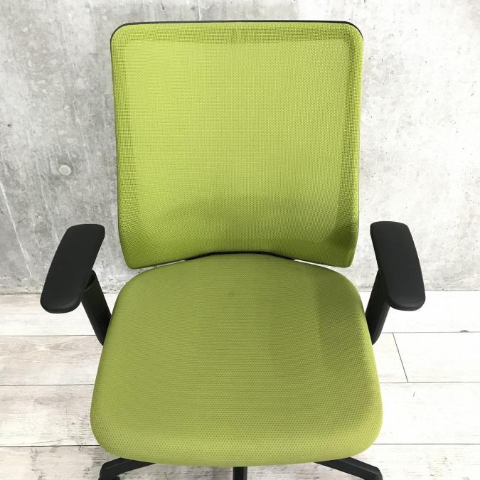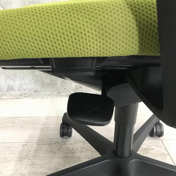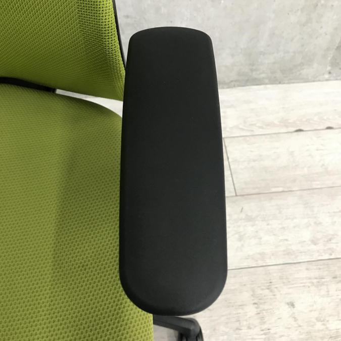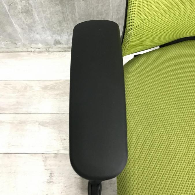 オカムラの最新定番オフィスシーティング フルーエント メッシュローバック アジャストアーム搭載モデル ライムグリーン- 名古屋千種店