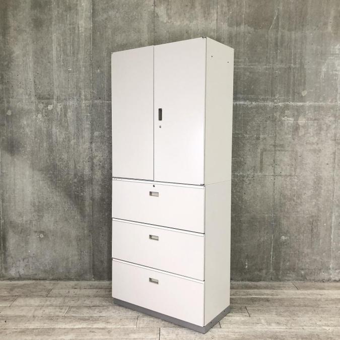 【倉庫在庫品】【これ1台で書類整理の問題が解決!上下で6段分の大容量収納!】■イトーキ (ITOKI)製 シンライン ハイキャビネット 両開き+3段ラテラル 書庫セット ■グレー ■シリンダー錠