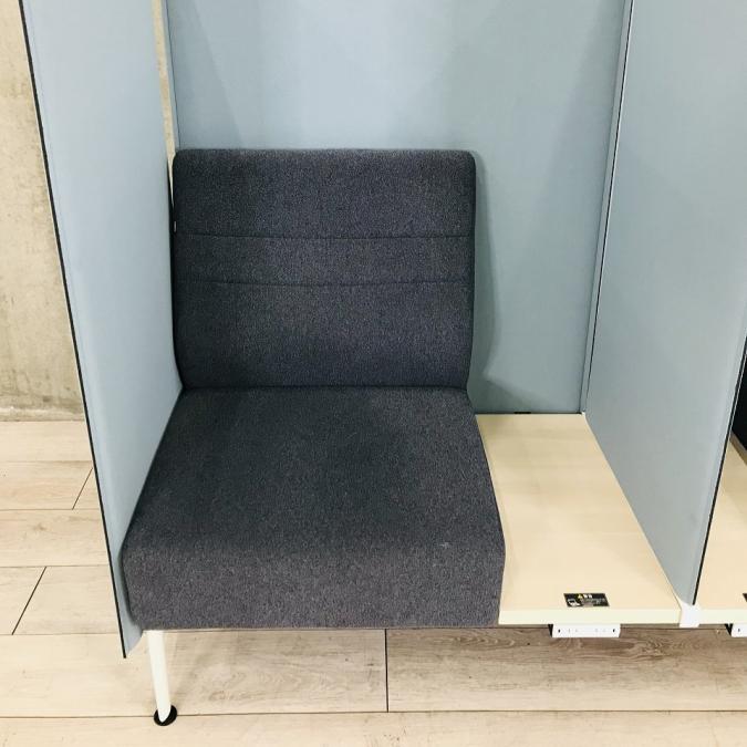 【ABW商品】【話題の集中ブース】オカムラ製・ライブスシリーズのユニットソファが入荷しました!ソファでリラックスしながら快適に仕事ができ、パーソナルテーブルも付いておりPC作業も快適です。弊社使用欄【A00920319】- 全店共通商品