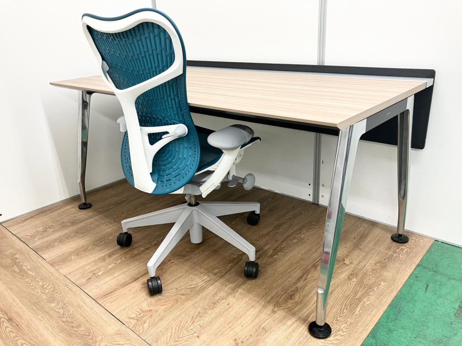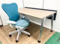 【デスクチェアセット】コクヨ製サイビデスク×ハーマンミラー製ミラチェア【木目調】- 品川・三田店