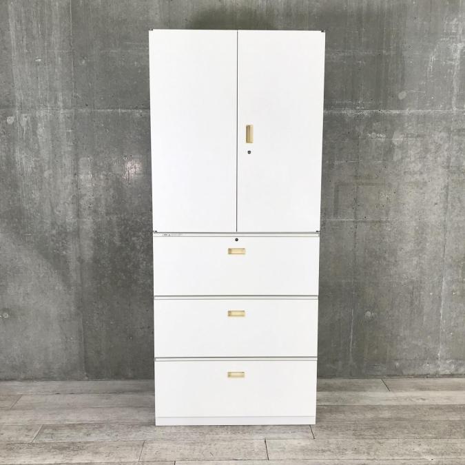 【T11】【商品入替のため、残り1台限り】イトーキ製 シンライン ホワイト W900xD450xH2140サイズ シリンダー錠 高品質で安心のスチールキャビネット! コレ1台で書類が一気に整理できます! 両開き+3段ラテラル 上下書庫セット!!