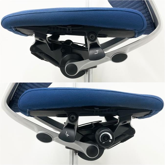 もちろん座り心地もコンテッサの直系ですから快適です。座面の素材はクッションとメッシュの2タイプあります。私、個人的には座面の中心部分でも外側でもテンションが変わらないクッション素材が、足を閉じても開いても快適なので推しです!"