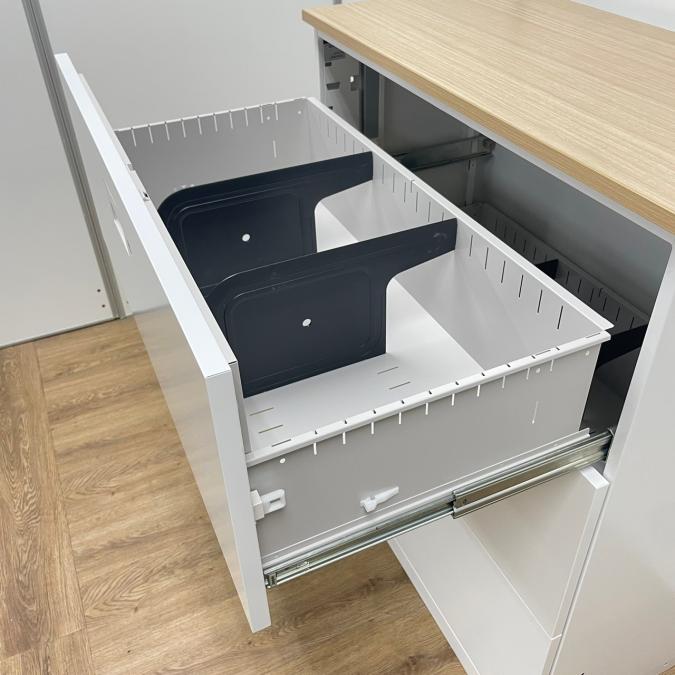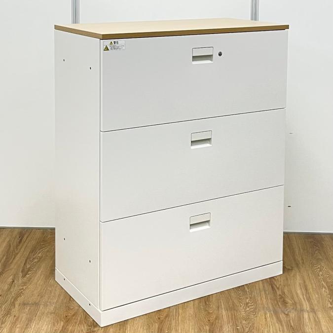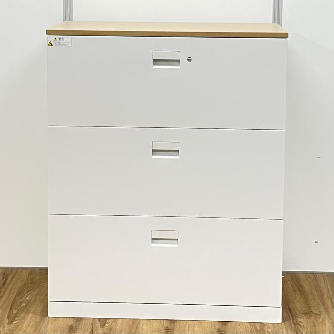 イトーキ製 エスキャビネットシリーズ ホワイトカラー ナチュラル天板付き 3段ラテラル書庫!!※現物画像※- 京都東寺店