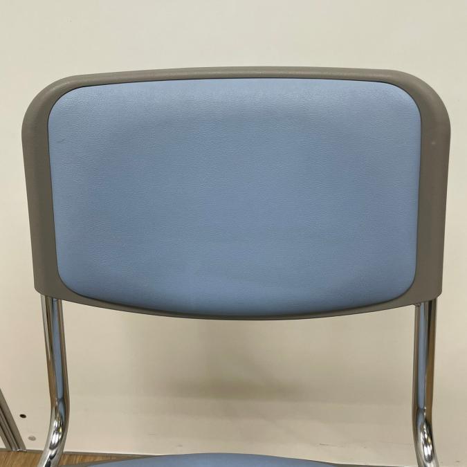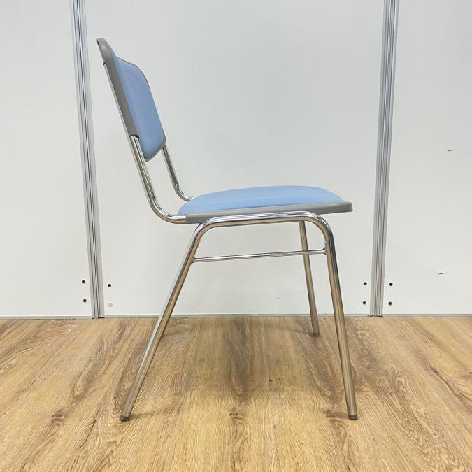【10脚セット・台車付き】トヨスチール製 DCシリーズ ブルーカラー ビニールレザー仕様 スタッキングチェア!!- 京都東寺店