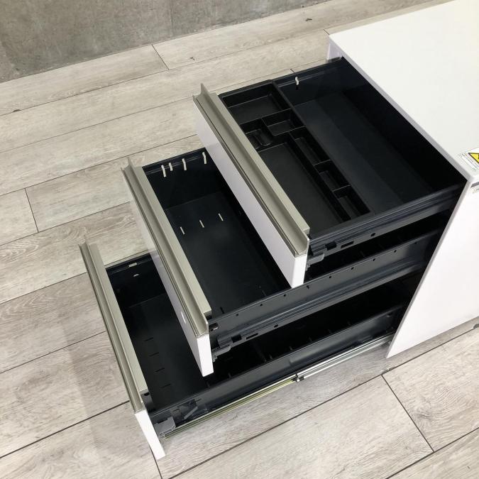 - 一部不具合ありその脇机・ワゴンの本来の効用を果たすための機能以外の一部が使用不可な状態。(例、引出が開閉しづらい、 キャスターロック機能使用不可、ラッチ不良 等がある。)