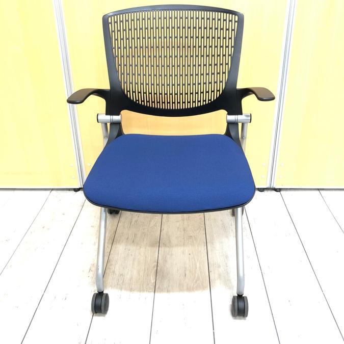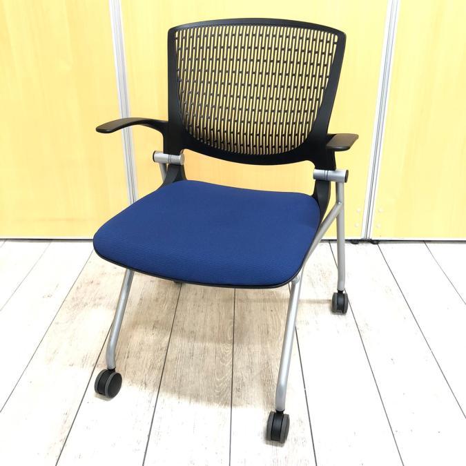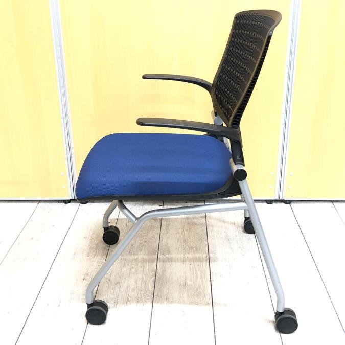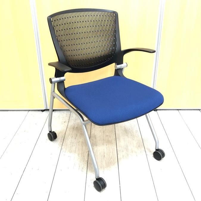 小肘付ネスティングチェア/背面クッション付き/ネイビー/オカムラ製/福岡/天神/博多/中古/安い