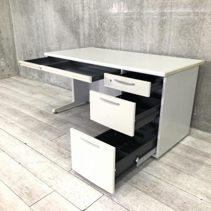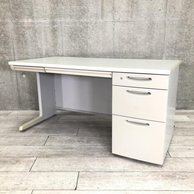 【在庫入替セール!】オフィスの定番シリーズ!ワークスペース広々の幅1400㎜、収納も充実で使いやすい! ■オカムラ/SD-V/片袖机/幅1400㎜/ライトグレー- 池袋店