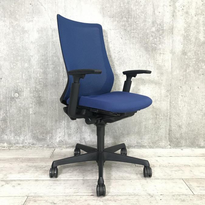 【背中を立体的に包み込む!】人のカラダに対する知見と独自技術が生み出した新感覚の座り心地!長時間のデスクワークにもおすすめの人気チェア!【在庫入替セール品!】 ■オカムラ/フルーエントチェア/ミディアムブルー ハイバック 可動肘付き