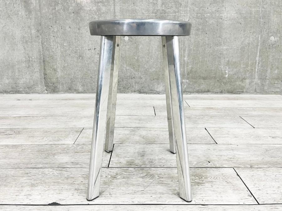 シンプルなデザインにミラー仕上げのアルミニウムを使用した、スタイリッシュなスツール。