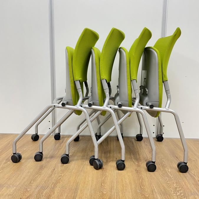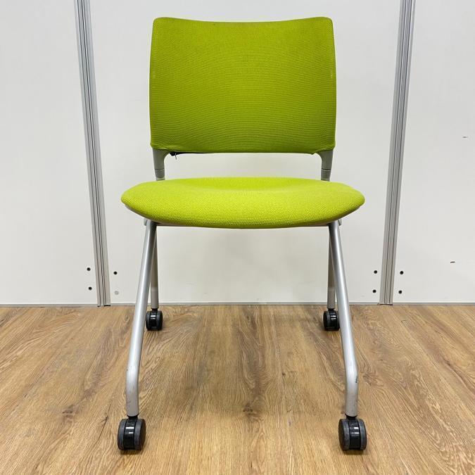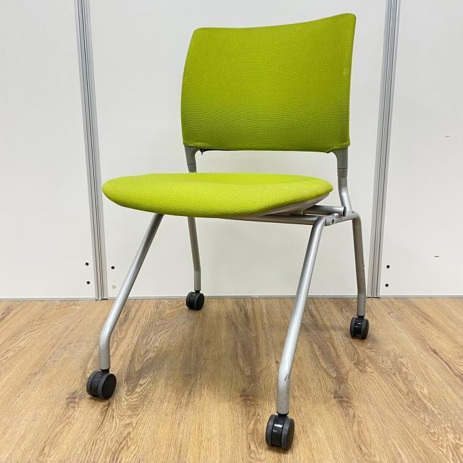 【4脚セット】オカムラ製 エレナⅡシリーズ グリーンカラー ネスティングチェア!!- 京都東寺店