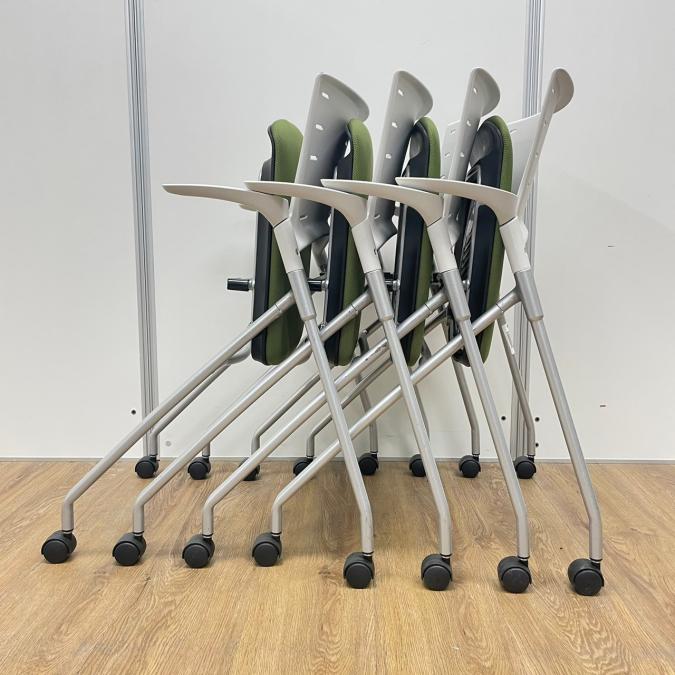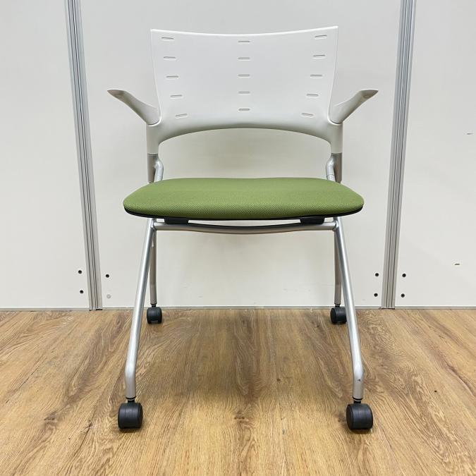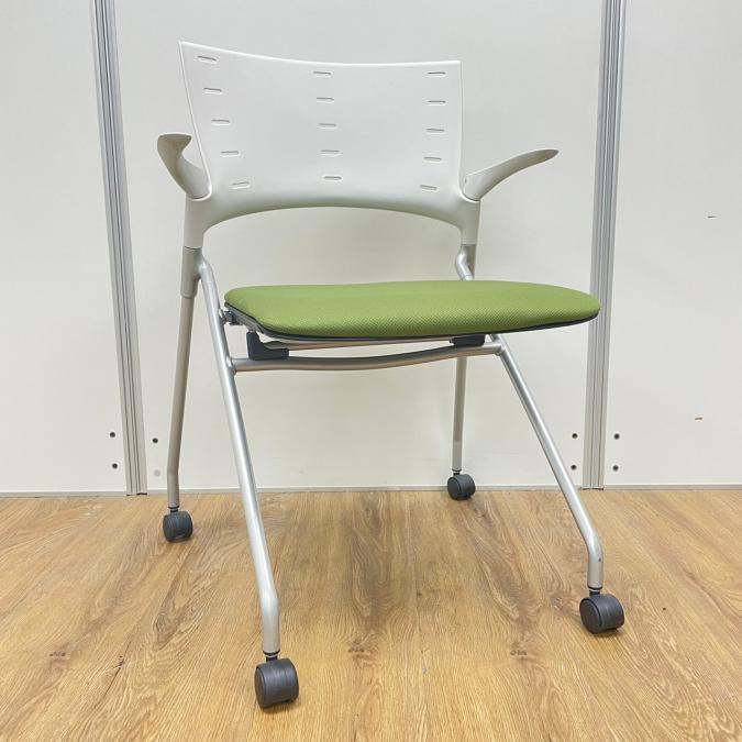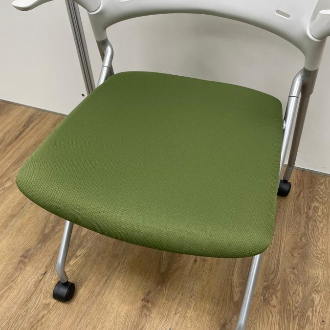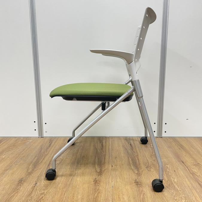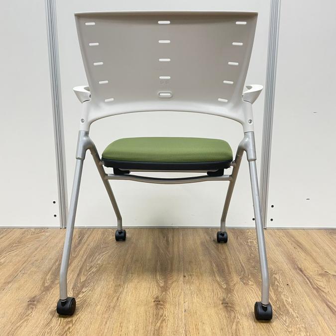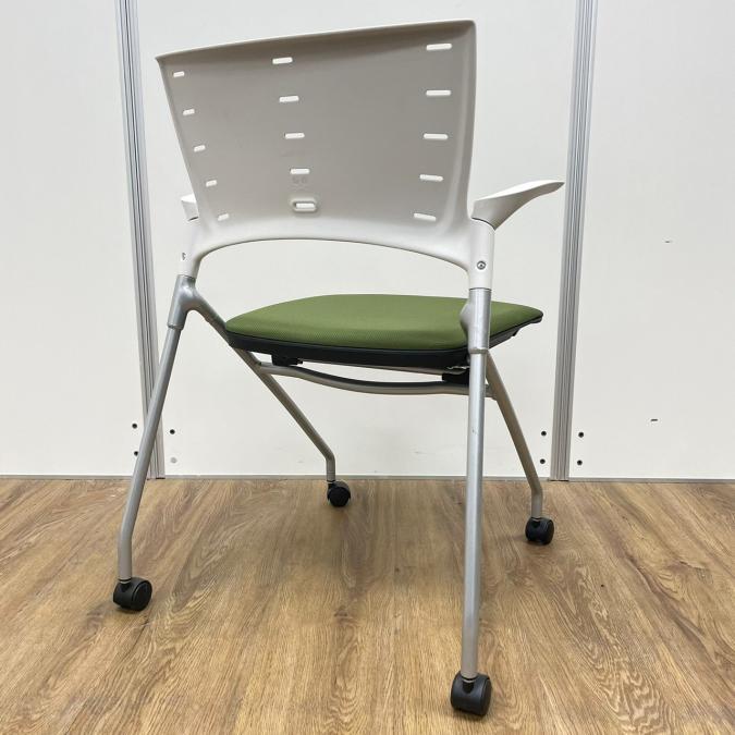 【商品入替のため、店頭在庫限り】【4脚セット】イトーキ製 マノスシーリズ グリーンxホワイトのツートンカラー 肘付き ネスティングチェア!!- 京都東寺店
