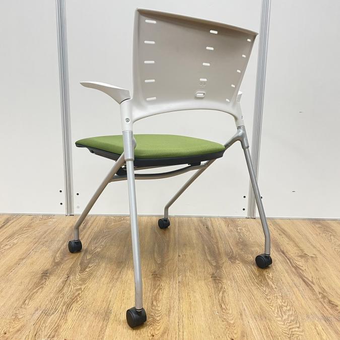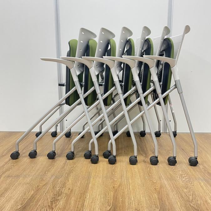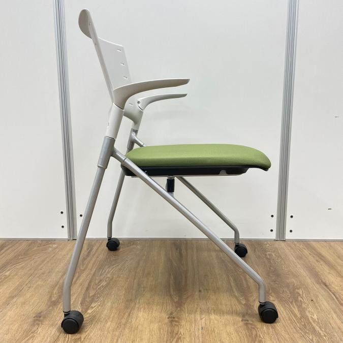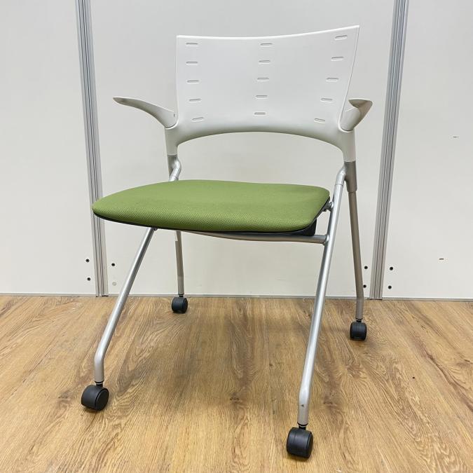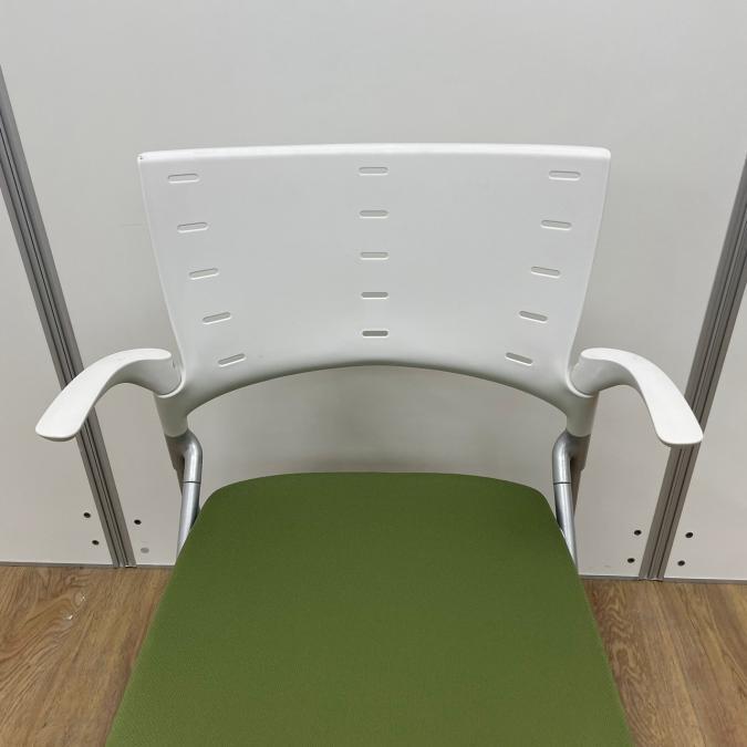 【商品入替のため、店頭在庫限り】【6脚セット】イトーキ製 マノスシーリズ グリーンxホワイトのツートンカラー 肘付き ネスティングチェア!!- 京都東寺店