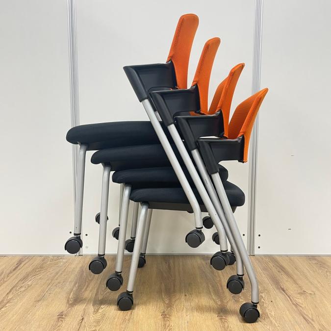 【シンプルスマートなスタッキングチェア!】■コクヨ(KOKUYO) プロッティ(Protty)チェア スタッキングチェア ミーティングチェア ■肘付き キャスター付き ■オレンジ【2505】弊社使用欄【A01018053】