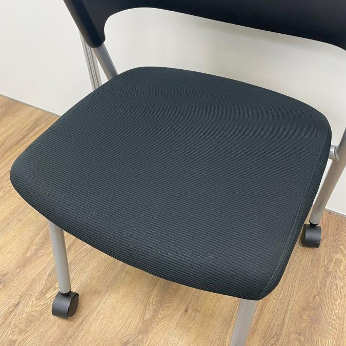 【シンプルスマートなスタッキングチェア!分厚いクッションで長時間でも快適な座り心地!】■コクヨ(KOKUYO)プロッティ(Protty) スタッキングチェア ■ブラック ■固定肘 ■背面樹脂 ■キャスター付