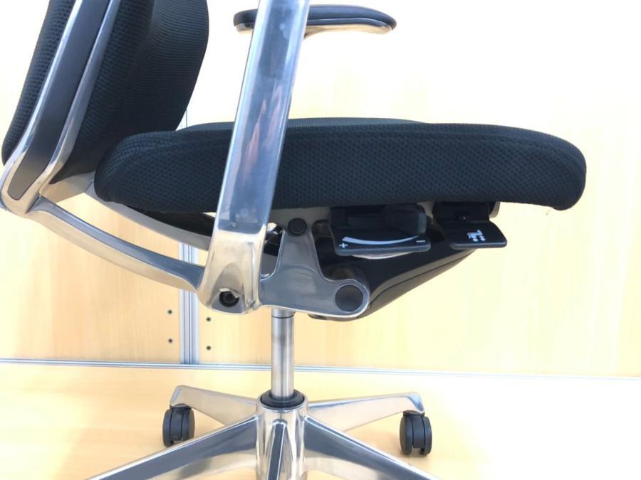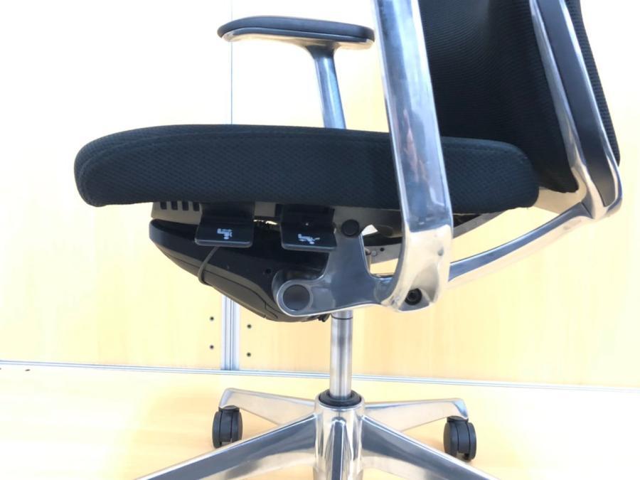 座面の高さや前後などの基本的な調整レバーが座面裏の前方に集約されており、姿勢を変えずに調節ができます。