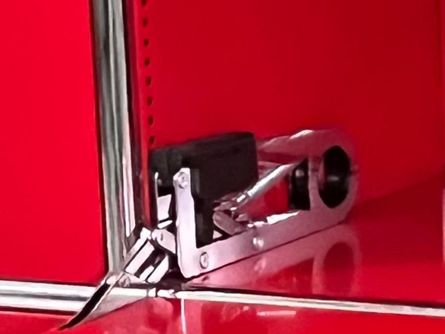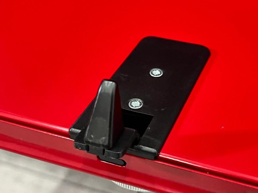 上段は跳ね上げ式のフィリップアップ、上から2段目はガラスの観音開き、3段目はオープン、4段目は前倒しのドロップダウン、最下段は純正のメタルボックスが付属した引き出し仕様です。