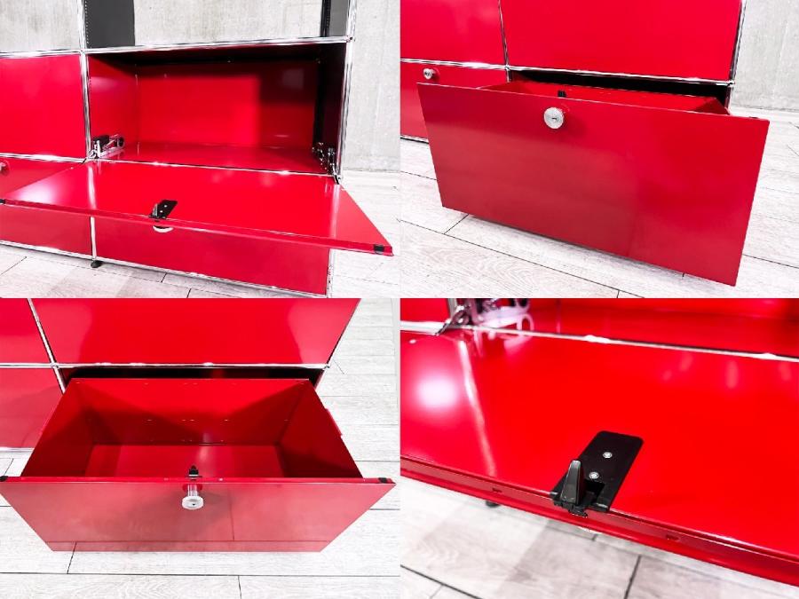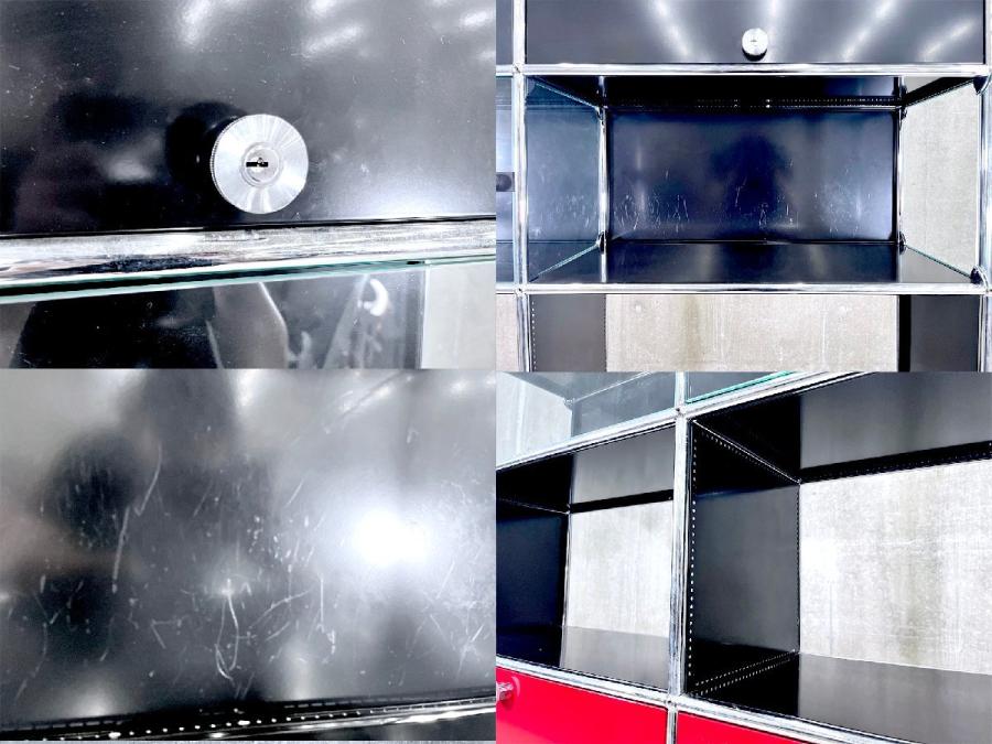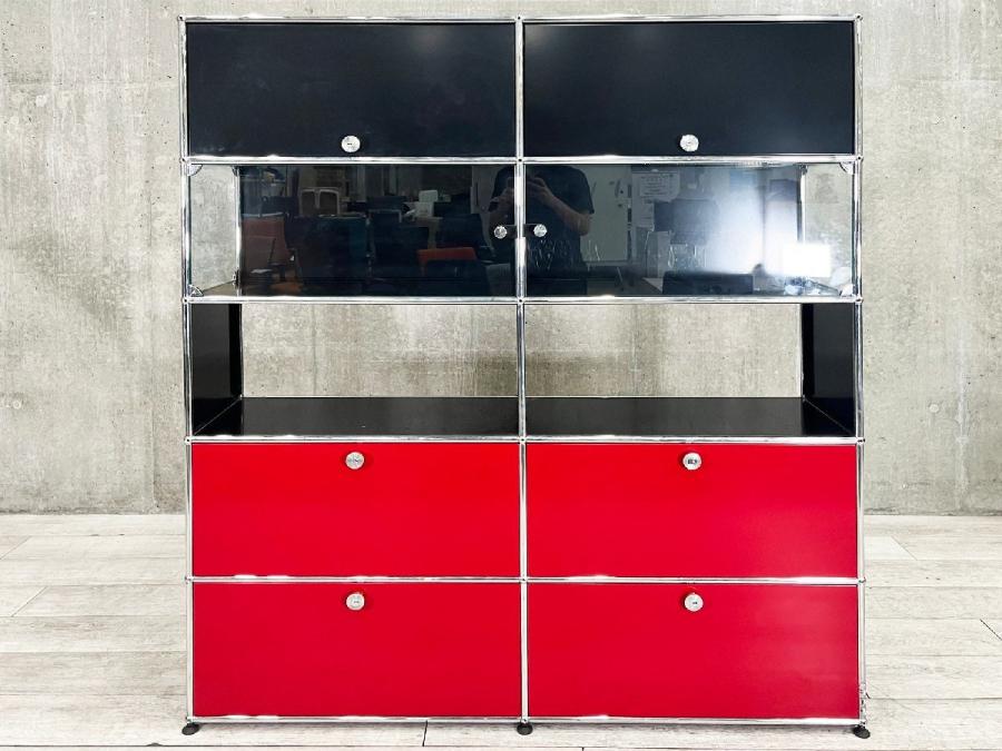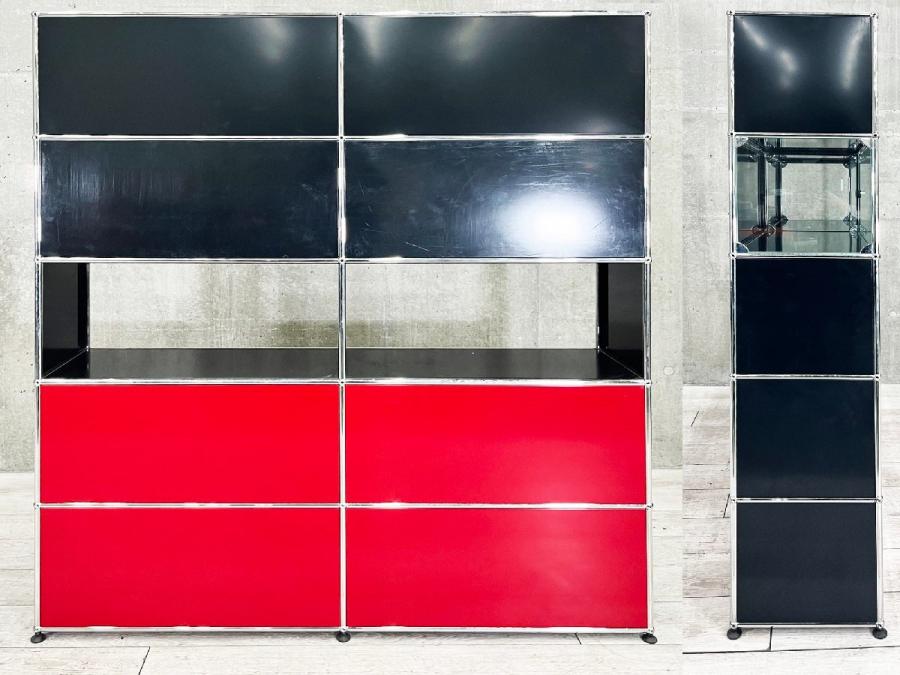 【配送先限定】USMハラー 2連5段キャビネット グラファイトブラック x ルビーレッド x ガラス ソフトクローズ- デザイナーズ家具センター