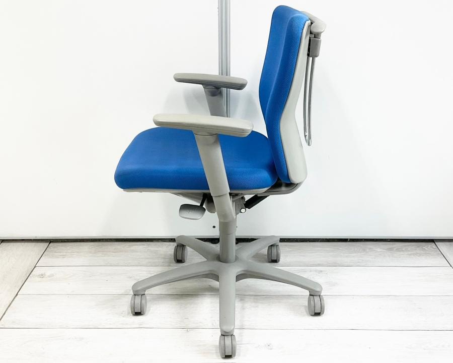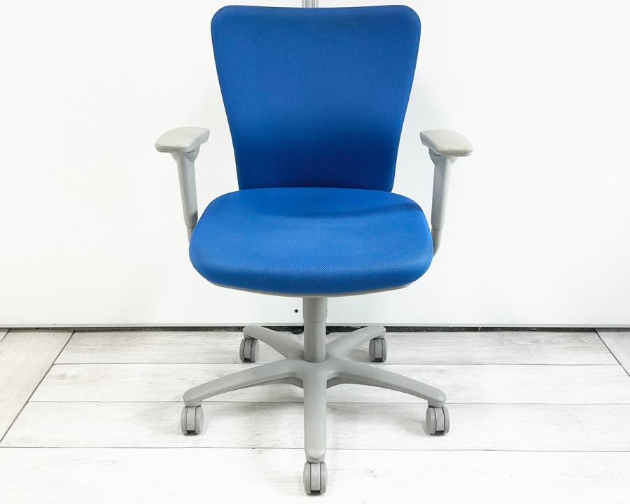 定番のオカムラ製のチェアが入荷!厚めのクッションで座り心地抜群! ■オカムラ/カロッツァ/ブルー ブラックシェル リング肘