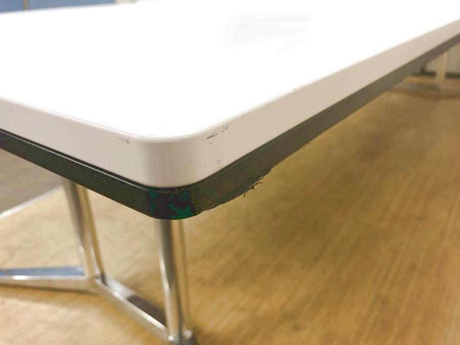 - 壊れている天板歪み、アジャスター無し、キャスター使用不可のようにそのテーブルの本来の効用を果たすための機能に不具合がある。