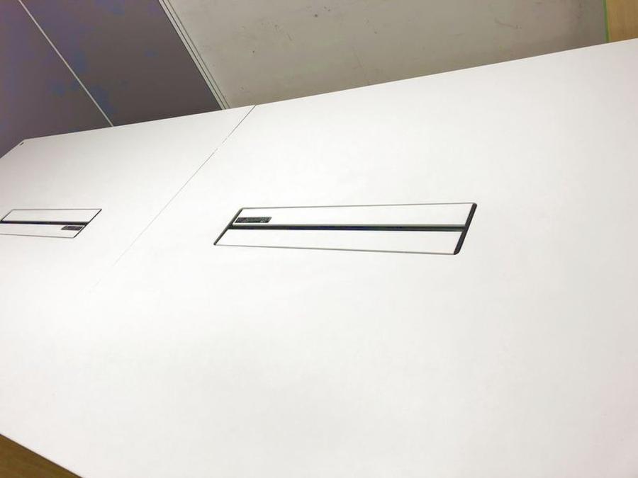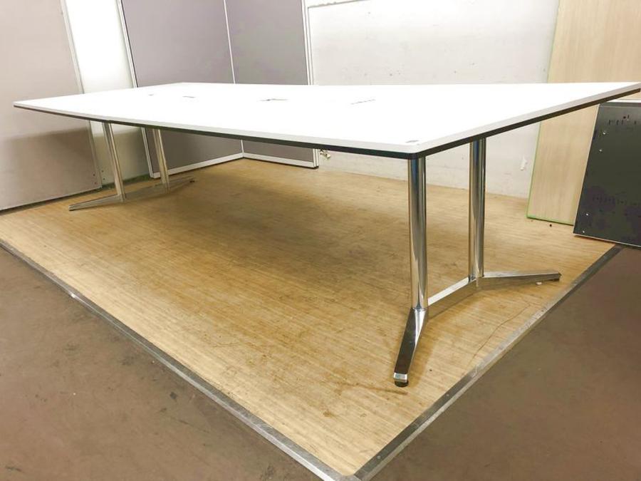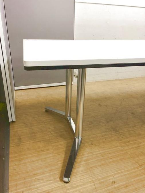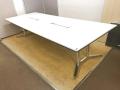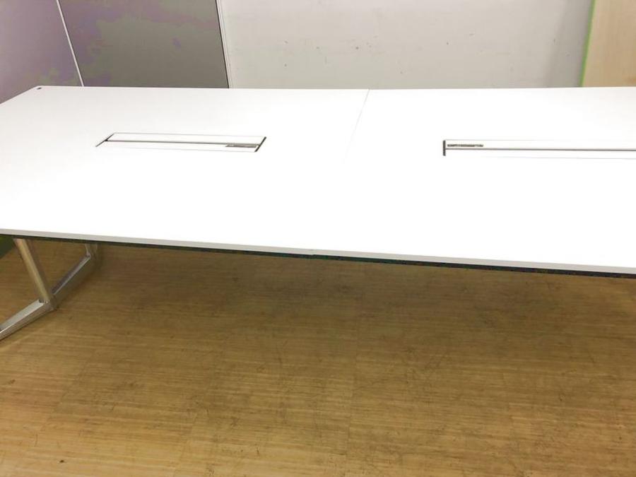 高級会議テーブル 配線ダクト付き ポリッシュ脚/ホワイト天板【ラティオ】W3200×D1200- 名古屋千種店