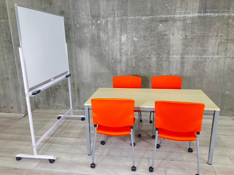 【これ1つでミーティングスペースセット!】■テーブル(RFヤマカワ・新古品)■ホワイトボード(カグクロ・新古品)■チェア(メーカ不明・中古品)- 在庫数