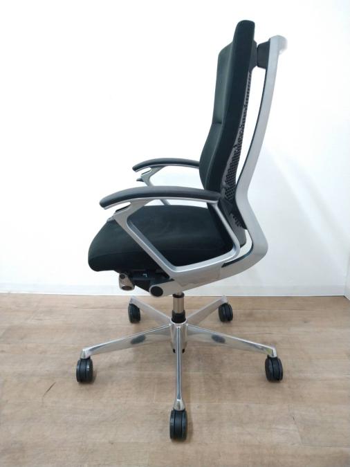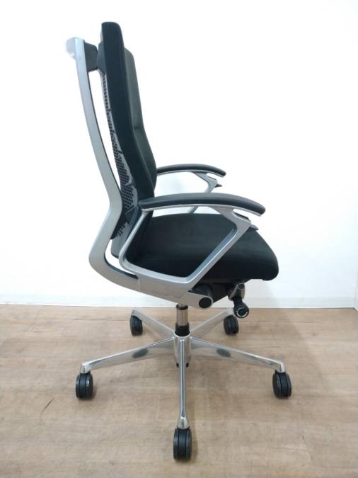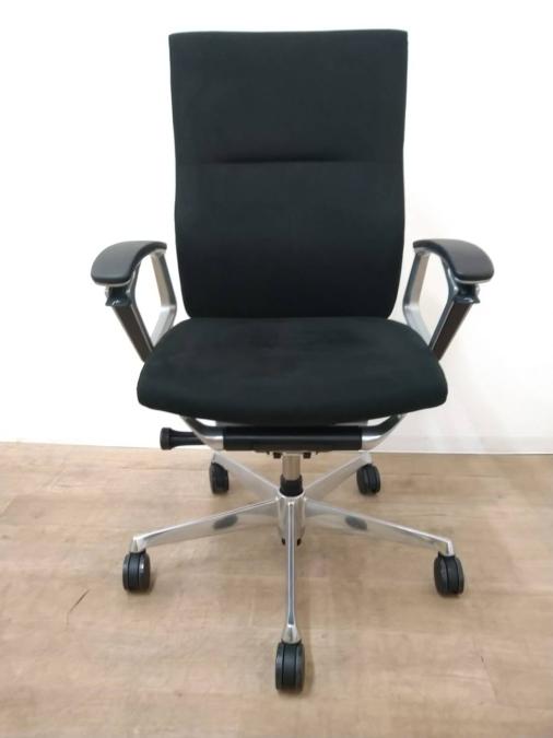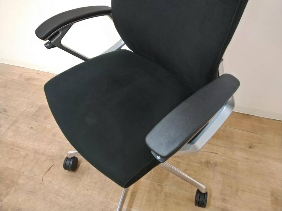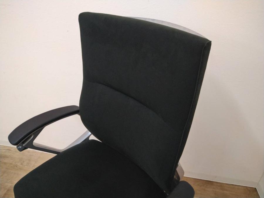 ※ひじ掛け部分に使用感ありのため、特価!【オカムラの最上級モデル!高級感と機能性を融合させたチェア!】■ハイバック 肘付き 背・座クロス張地(スエード調) 固定肘 ※サイド剥がれ有り ランバーサポート付き ブラック/オカムラ/デューク