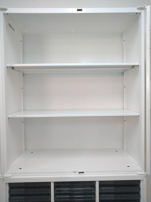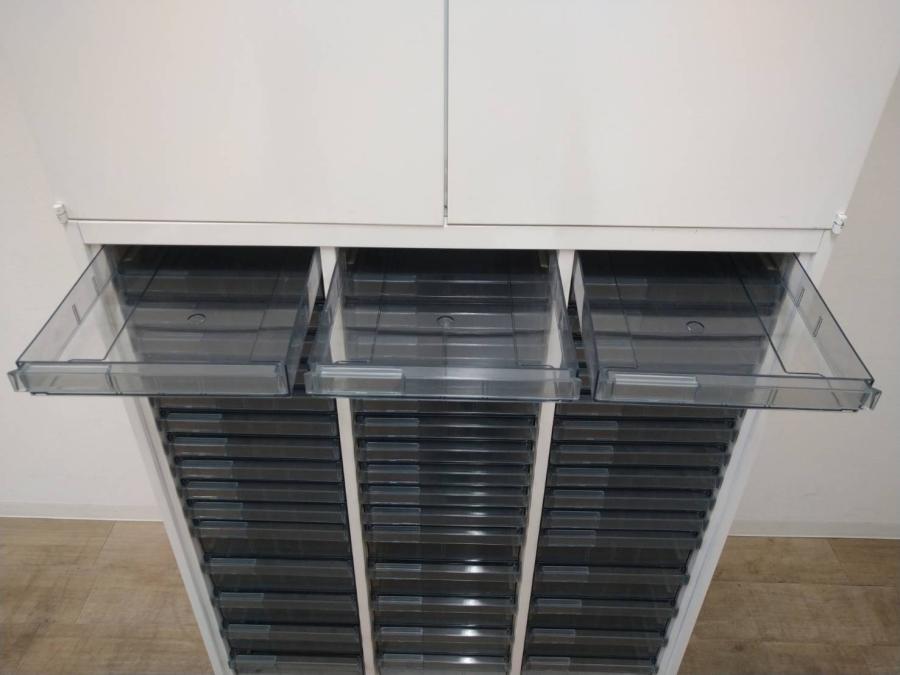 上が両開き書庫で下がクリスタルトレイキャビネットになります。