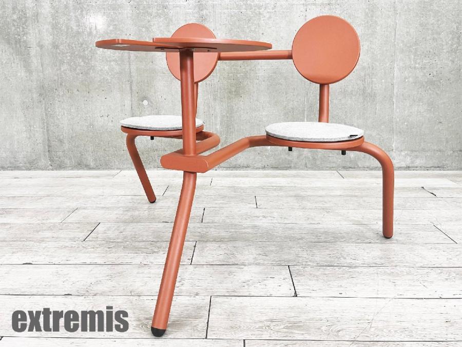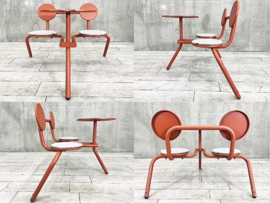 向かい合って座るのではなく隣同士に座ることで、同じ方向を向いて過ごすことができます。オフィスでは、2人掛けの小さなミーティングスペースになり、休憩スペースやオープンカフェにもぴったりです。