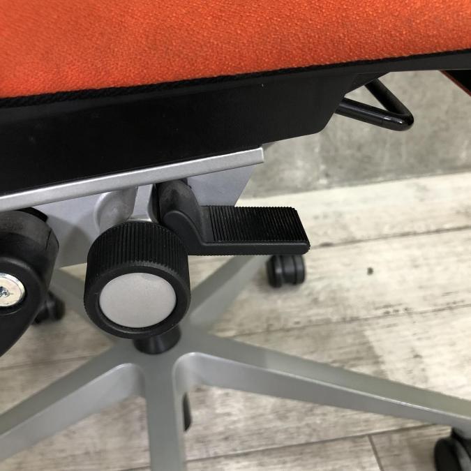 快適な座り心地に不可欠な調節機能である、上下昇降、座面の奥行き調整、リクライニングなどを備えており、操作もわかりやすく好評です。 特に、座面の奥行きは、座面下の左右に通った細いバーで調整でき、座ったままで軽やかに滑るように調整が可能です。 価格面では、新品では高めですが、中古は流通も多く、定価の3割前後の価格で高級チェアの座り心地を手に入れることができます!