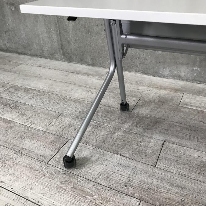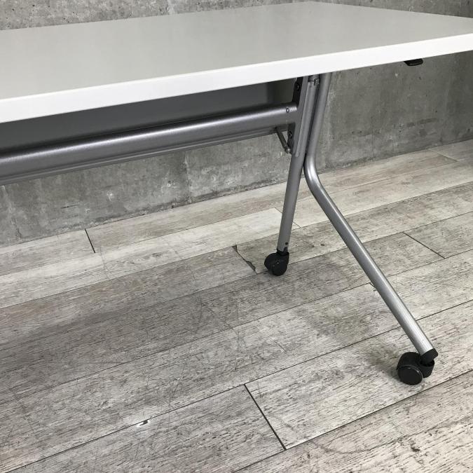 【商品入替セールあと1台!】定番ニューグレー天板&片付け楽々キャスター付サイドススタックテーブル◆オカムラ製- 埼玉本店